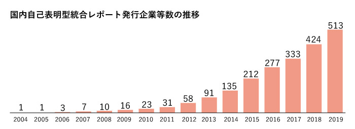 何だか言葉だけが独り歩きしている気もする『統合報告』。でも多くの企業が取り組み始めているのも事実。2019年にはわが国でも約513社が統合型のレポートを発行しています。